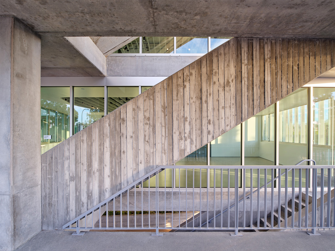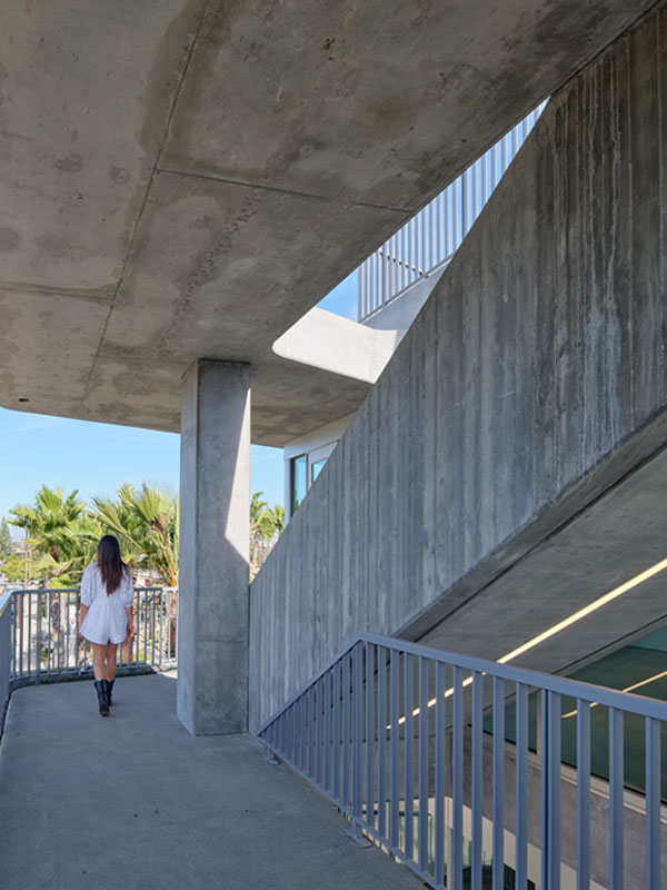 Board-formed and smooth cast-in-place concrete expresses primary and secondary structure, creating a richly textured and distinctive face for the center. The new construction adds flexible, light-filled spaces—suitable for art exhibitions, education, or community gatherings. These facilities support the Wende Museum’s commitment to provide free resources to the residents of Culver City and space for community such as the United States Veterans’ Artist Alliance, Culver City Unified School District, the Mayme A. Clayton Library and Museum, and Upward Bound House.