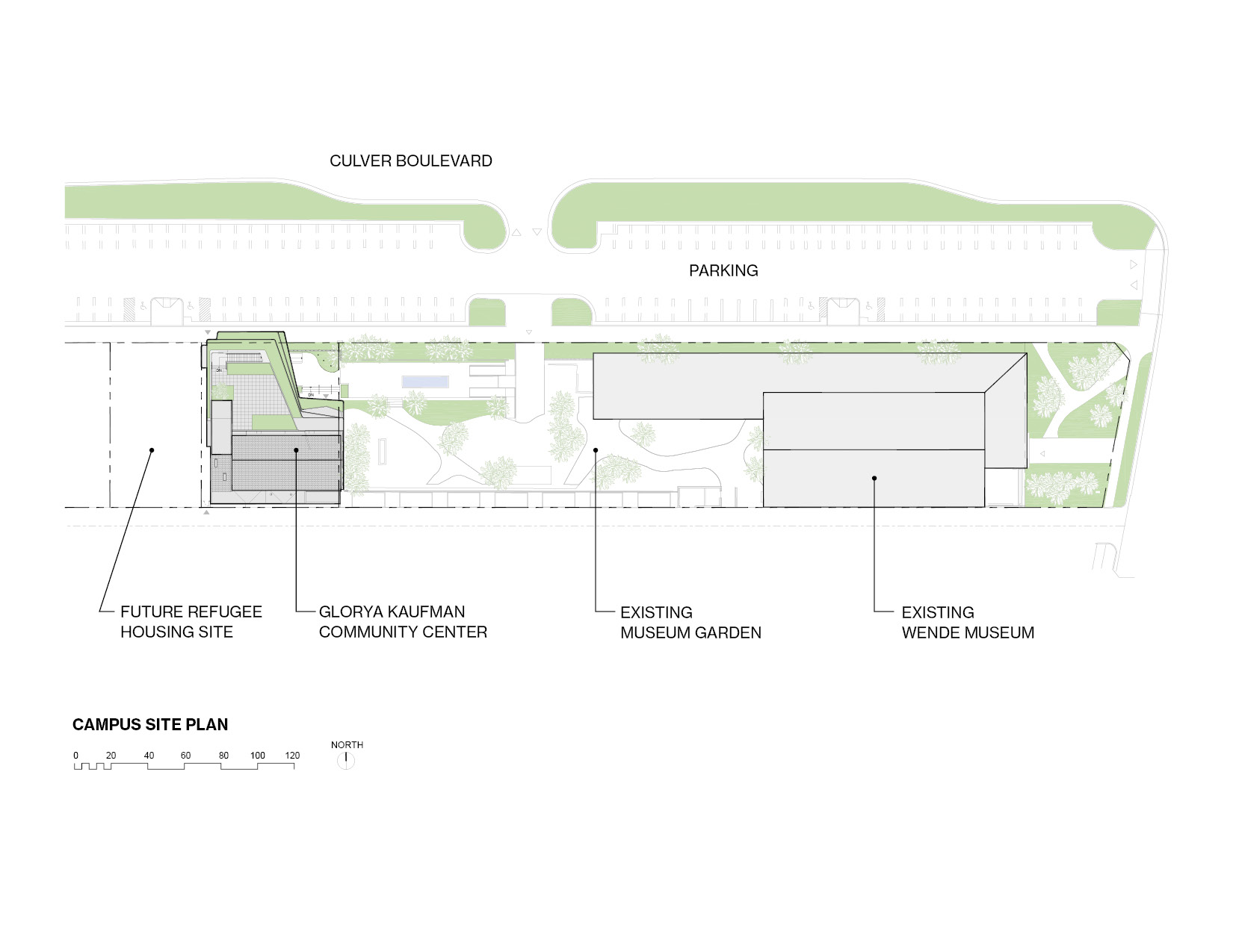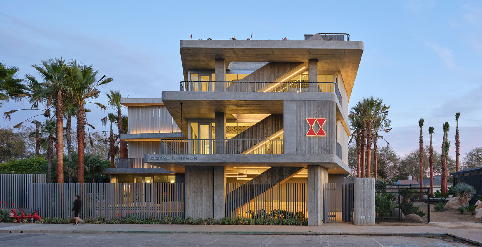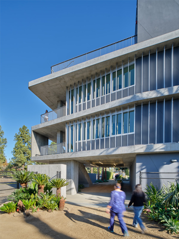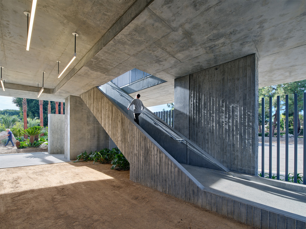 Designed as a multipurpose hub in the heart of Culver City’s cultural corridor, the Glorya Kaufman Community Center evokes Cold War–era architecture while its program supports the Wende Museum’s mission to learn from the past in order to inspire social change in the future. The 7,500-square-foot concrete structure joins the museum’s existing exhibition building, a former National Guard Armory, on a long and narrow site. Together, these buildings consitute a campus of cultural, educational, and social services, knitted together by a communal landscape. Supportive housing for refuge artists is planned for later development in collaboration with the Artistic Freedom Initiative (AFI), which will add a residential component to the campus.