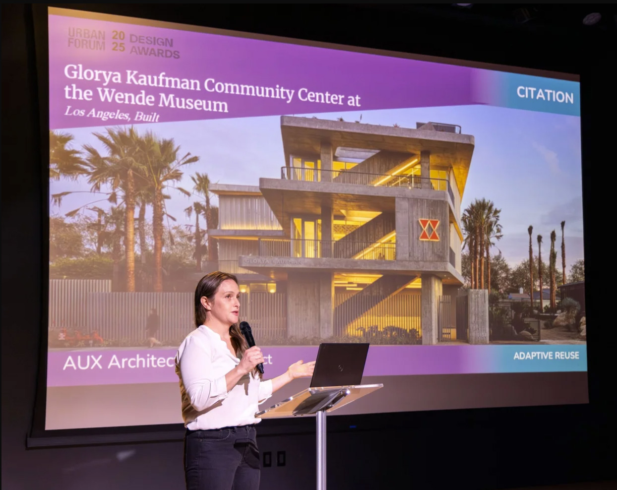 On November 12, designers, civic leaders, and community members gathered in the A-Frame Theater within the newly opened Glorya Kaufman Community Center at the Wende Museum to recognize projects shaping a more inclusive, sustainable, and livable Los Angeles. Hosting the event within the award-winning building offered guests a firsthand experience of the project’s architectural vision and civic impact.